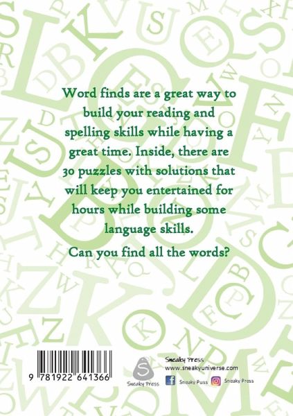Not only are word finds fun but they are great for building literacy skills. They can help develop word recognition, pattern recognition skills, improve spelling, expand and revise vocabulary Word Finds Volume 2 contains 30 more themed word find puzzles suitable for children and adults of all ages.