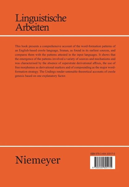 This book explores a relatively little investigated area of creole languages, word-formation. It provides the most comprehensive account so far of the word-formation patterns of an English-based creole language, Sranan, as found in its earliest sources, and compares them with the patterns attested in the input languages. One of the few studies of creole morphology based on historical data, the book discusses the theoretical problems arising with the historical analysis of creole word-formation and provides an analysis along the lines of Booij's (2005, 2007) Construction Morphology in which the assumed boundaries between affixation, compounding and syntactic constructions play a very minor role. It shows that Early Sranan word-formation is characterised by the absence of superstrate derivational affixes, the use of free morphemes as derivational markers and of compounding as the major word-formation strategy. The emergence of Early Sranan word-formation involved multiple sources (the input languages, universals, language-internal development) and different mechanisms (reanalysis of free morphemes as derivational markers, adaptation of superstrate complex words, transfer from the substrates and the creation of innovations). The findings render untenable theoretical accounts of creole genesis based on one explanatory factor, such as superstrate or substrate influence.