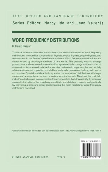 This book is an introduction to the statistical analysis of word frequency distributions, intended for linguists, psycholinguistics, and researchers work ing in the field of quantitative stylistics and anyone interested in quantitative aspects of lexical structure. Word frequency distributions are characterized by very large numbers of rare words. This property leads to strange statisti cal phenomena such as mean frequencies that systematically keep changing as the number of observations is increased, relative frequencies that even in large samples are not fully reliable estimators…mehr