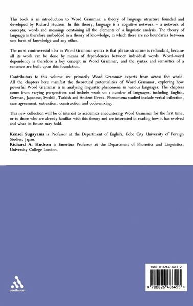 This book is an introduction to Word Grammar, a theory of language structure founded and developed by Dick Hudson. In this theory, language is a cognitive network - a network of concepts, words and meanings containing all the elements of a linguistic analysis. The theory of language is therefore embedded in a theory of knowledge, in which there are no boundaries between one form of knowledge and any other. The most controversial idea in Word Grammar syntax is that phrase structure is redundant, because all its work can be done by means of dependencies between individual words. Word-word dependency is therefore a key concept in Word Grammar, and the syntax and semantics of a sentence is built upon this foundation. Contributors to this volume are primarily Word Grammar grammarians from across the world. All the chapters here manifest theoretical potentialities of Word Grammar, exploring how powerful Word Grammar is to offer analysis for linguistic phenomena in various languages. The chapters come from varying perspectives and include work on a number of languages, including English, German, Japanese, Swahili, Turkish and Ancient Greek. Phenomena studied include verbal inflection, case agreement, extraction, construction and code-mixing. This collection will be of interest to academics encountering Word Grammar for the first time, or for those who are already familiar with this theory and are interested in reading how it has evolved and what its future may hold.
