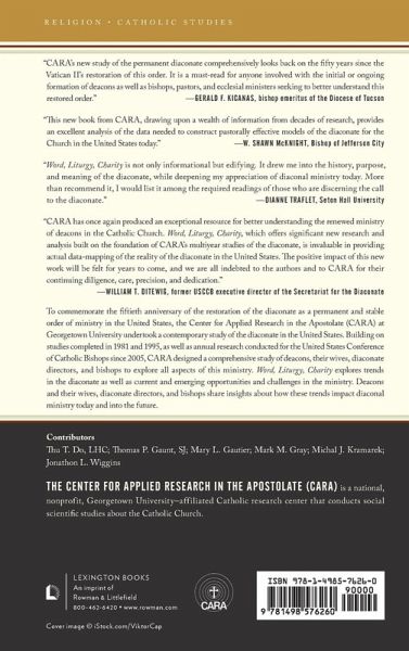 Introduction 1. What is the Purpose of the Diaconate?: A Normative Description of the Diaconate Michal J. Kramarek 2. How is the Diaconate Changing?: Trends in the Presence and Ministry of Deacons Mary L. Gautier 3. Who are the Deacons?: Demographic Characteristics of Deacons Mary L. Gautier 4. What Does It Take to Become a Deacon?: Deacons' Vocation and Formation Michal J. Kramarek 5. What Do the Deacons Do?: The Ministries of Deacons Thu T. Do, L.H.C. and Michal J. Kramarek 6. Is It Satisfying to Be a Deacon?: Measuring Satisfaction among Deacons Jonathon L. Wiggins 7. What Does It Mean to Be a Deacon's Wife? Mark M. Gray 8. Where Do Deacons Fit within the Diocese? Thomas P. Gaunt, S.J.