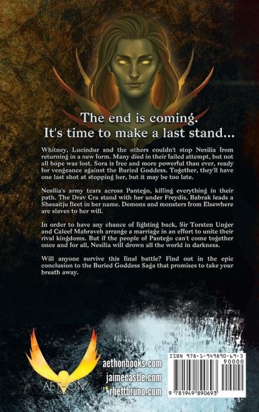 The end is coming. It's time to make a last stand... Whitney, Lucindur and the others couldn't stop Nesilia from returning in a new form. Many died in their failed attempt, but not all hope was lost. Sora is free and more powerful than ever, ready for vengeance against the Buried Goddess. Together, they'll have one last shot at stopping her, but it may be too late. Nesilia's army tears across Pantego, killing everything in their path. The Drav Cra stand with her under Freydis, Babrak leads a Shesaitju fleet in her name. Demons and monsters from Elsewhere are slaves to her will. In order to have any chance of fighting back, Sir Torsten Unger and Caleef Mahraveh arrange a marriage in an effort to unite their rival kingdoms. But if the people of Pantego can't come together once and for all, Nesilia will drown all the world in darkness. Will anyone survive this final battle? Find out in the epic conclusion to the Buried Goddess Saga that promises to take your breath away.