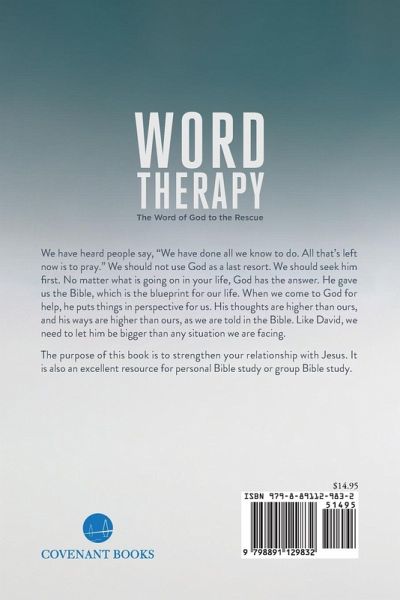 We have heard people say, "We have done all we know to do. All that's left now is to pray." We should not use God as a last resort. We should seek him first. No matter what is going on in your life, God has the answer. He gave us the Bible, which is the blueprint for our life. When we come to God for help, he puts things in perspective for us. His thoughts are higher than ours, and his ways are higher than ours, as we are told in the Bible. Like David, we need to let him be bigger than any situation we are facing. The purpose of this book is to strengthen your relationship with Jesus. It is also an excellent resource for personal Bible study or group Bible study.