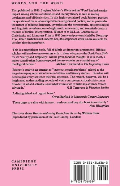 Prickett charts the schism, opened at the end of the oighteenth century, between biblical hermeneutics and literary criticism. This split has profound implications for both contemporary biblical translation and literary theory. The author investigates the critical commonplace that religious language is essentially poetic, and traces the development of that view in the writings of Dennis and Vico, Herder and Eichhorn, Ccoleridge and Arnold, Wordsworth and Hopkins, and Austin Farrer and Paul Ricouer. This concept continues to provide a terminology for discussing narrative that can no longer be interpreted literally or allegorically, but has also led some critics to devise inadequate translation theories and conceptions of metaphor.