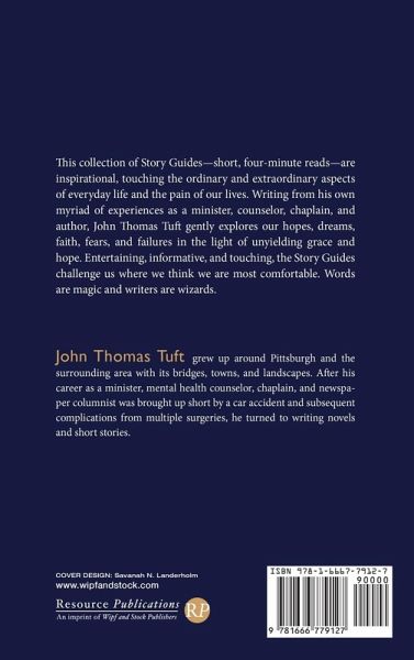 This collection of Story Guides--short, four-minute reads--are inspirational, touching the ordinary and extraordinary aspects of everyday life and the pain of our lives. Writing from his own myriad of experiences as a minister, counselor, chaplain, and author, John Thomas Tuft gently explores our hopes, dreams, faith, fears, and failures in the light of unyielding grace and hope. Entertaining, informative, and touching, the Story Guides challenge us where we think we are most comfortable. Words are magic and writers are wizards.