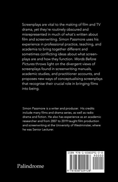 Screenplays are vital to the making of film and TV drama, yet they're routinely obscured and misrepresented in much of what's written about film and screenwriting. Simon Passmore uses his experience in professional practice, teaching, and academia to bring together differing and often conflicting ideas about what screenplays are and how they function. Words Before Pictures throws light on the divergent views of screenplays found in screenwriting manuals, academic studies, and practitioner accounts, and proposes new ways of conceptualising screenplays that recognise their crucial role in bringing films into being.
