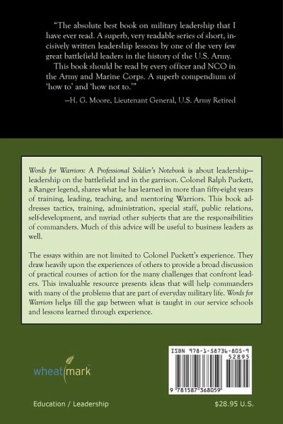 Words for Warriors: A Professional Soldier's Notebook is about leadership-leadership on the battlefield and in the garrison. Colonel Ralph Puckett, a Ranger legend, shares what he has learned in more than fifty-eight years of training, leading, teaching, and mentoring Warriors. This book addresses tactics, training, administration, special staff, public relations, self-development, and myriad other subjects that are the responsibilities of commanders. Much of this advice will be useful to business leaders as well. The essays within are not limited to Colonel Puckett's experience. They draw heavily upon the experiences of others to provide a broad discussion of practical courses of action for the many challenges that confront leaders. This invaluable resource presents ideas that will help commanders with many of the problems that are part of everyday military life. Words for Warriors helps fill the gap between what is taught in our service schools and lessons learned through experience.