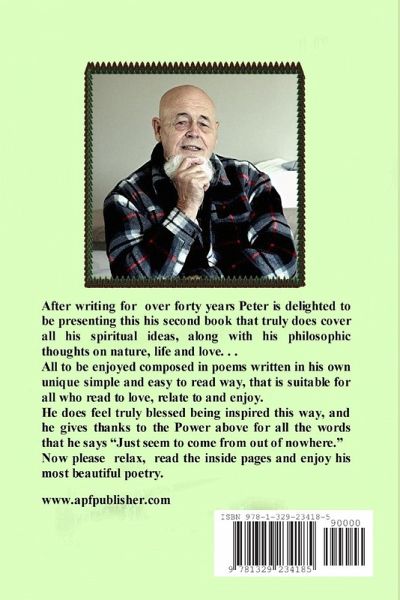 This is the second book of Peter's and just like his first book it id full of poetry that will move all it's readers of any age as they relate and embrace all his inspirational words on nature, love, life and living ...
