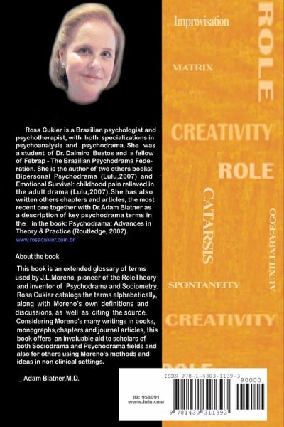 This book is an extended glossary of terms used by J. L. Moreno, the inventor of psychodrama. The author listed these terms alphabetically, along with Moreno's own descriptions or definitions of the terms. She also gave the page number and the book where the quotation can be found. Any scholars who want to find key references would do well to have this book in their libraries