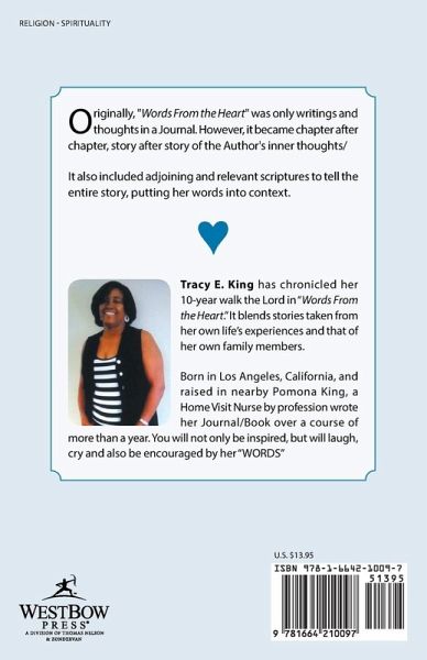 Originally, "Words From the Heart" was only writings and thoughts in a Journal. However, it became chapter after chapter, story after story of the Author's inner thoughts/ It also included adjoining and relevant scriptures to tell the entire story, putting her words into context.