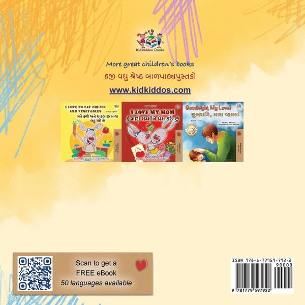 English Gujarati Bilingual children's book. Perfect for kids learning English or Gujarati as their second language. This is a fun and colorful book for kids ages 3-5. Each page shows a part of a child's day, like waking up, eating breakfast, or playing with friends. Important words, like "toothbrush," "apple," and "blanket," are shown in the pictures and also separately illustrated. This helps kids learn to recognize and read the words while exploring their world. With bright illustrations and simple words, this book makes learning fun and easy!