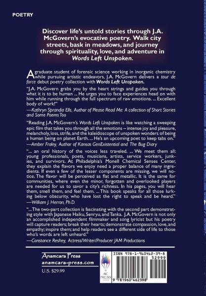 Discover life's untold stories through J.A. McGovern's evocative poetry. Walk city streets, bask in meadows, and journey through spirituality, love, and adventure in Words Left Unspoken.