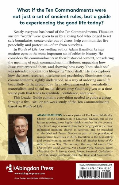 Nearly everyone has heard of the Ten Commandments, the list of "thou-shalt-nots" found in the Bible. Jesus saw these commandments not as onerous burdens, but as guideposts to help us experience a good and beautiful life. In this book of Scripture and inspiration, bestselling author Adam Hamilton brings modern eyes to the most important set of ethics in history. He considers the commandments in their historical context, considering the meaning of each commandment in Hebrew, unpacking how Jesus reinterpreted them, and showing how every thou-shalt-not was intended to point to a life-giving "thou shalt." He also explores how the latest research in science and psychology illuminates these commandments, rightly understood, as a way of ordering one's life beautifully in the present day. In a culture marked by workaholism, materialism, and social media-driven envy, God has given us a time-tested path that leads to gratitude, confidence, and peace. The Leader Guide contains everything needed to guide a group through a six-week Lenten study or a more in depth ten-session study including session plans, activities, and discussion questions.