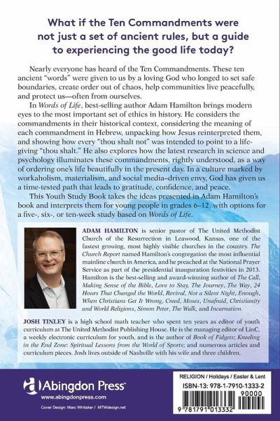 Nearly everyone has heard of the Ten Commandments, the list of "thou-shalt-nots" found in the Bible. Jesus saw these commandments not as onerous burdens, but as guideposts to help us experience a good and beautiful life. In this book of Scripture and inspiration, bestselling author Adam Hamilton brings modern eyes to the most important set of ethics in history. He considers the commandments in their historical context, considering the meaning of each commandment in Hebrew, unpacking how Jesus reinterpreted them, and showing how every thou-shalt-not was intended to point to a life-giving "thou shalt." He also explores how the latest research in science and psychology illuminates these commandments, rightly understood, as a way of ordering one's life beautifully in the present day. In a culture marked by workaholism, materialism, and social media-driven envy, God has given us a time-tested path that leads to gratitude, confidence, and peace. This Youth Study Book takes the ideas presented in Adam Hamilton's book and interprets them for young people grades 6-12.