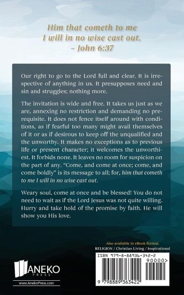 Our right to go to the Lord full and clear. It is irrespective of anything in us. It presupposes need and sin and struggles; nothing more. The invitation is wide and free. It takes us just as we are, annexing no restriction and demanding no prerequisite. It does not fence itself around with conditions, as if fearful too many might avail themselves of it or as if desirous to keep off the unqualified and the unworthy. It makes no exceptions as to previous life or present character; it welcomes the unworthiest. It forbids none. It leaves no room for suspicion on the part of any. "Come, and come…mehr
