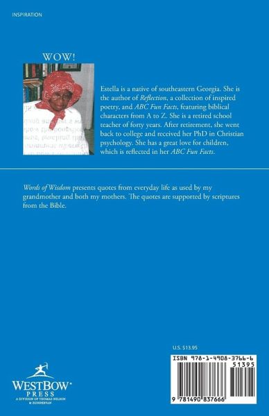 Words of Wisdom presents quotes from everyday life as used by my grandmother and both my mothers. The quotes are supported by scriptures from the Bible.