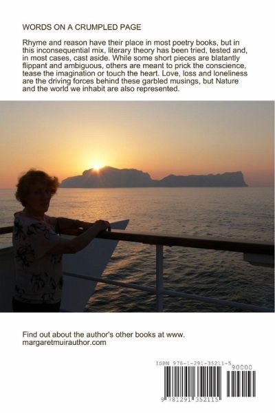 While some short pieces are blatantly flippant and ambiguous, others are meant to prick the conscience, tease the imagination or touch the heart. Love and loss, joy and sadness all included in these garbled musings. The author believes that rhyme and reason have their place in most poetry books, but in this inconsequential mix, literary theory has been tried, tested and, in most cases, cast aside. WORDS ON A CRUMPLED PAGE is an eclectic mix of poetry and prose by fiction author, Margaret Muir scribbled on scraps of paper over the last twenty years.