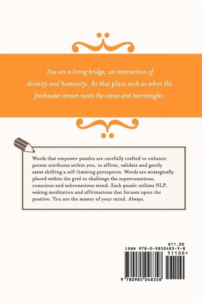 Words that Empower is a word search puzzle series, available in a convenient carry size book and interactive CD. The puzzles are carefully crafted to enhance potent attributes within you, to affirm, validate and gently assist shifting a self-limiting perception. Words are strategically placed within the grid to challenge the superconscious, conscious and subconscious mind. Each puzzle utilizes NLP, a form of 'anchoring' information into the subconscious and waking mediation, which focuses the mind into a relaxed state thereby allowing you to absorb more information and affirmations that focus upon the positive. The series is a meditation of language, concepts, and word combinations intended to challenge your perceptions and perspective. "Your Callings" VII A "call" is a need to not only fulfill you by living an authentic life, but also include the world in which you live in. We are spirits having a human experience. It is our humanity that endeavors to utilize this plane we call Earth to deepen and expand understanding, connection to all and everything, to become aligned with our highest self and Source. Understand, there is no one like you, never was, never will be. You are unique, you are vital. You are not a mistake, an accident or freak of nature. You are needed, not only for your soul's purpose, but as well for the world itself. Right now, you are doing, existing as in-tended, but as well there is more, much more for you, and that is a part of your job here, the journey of discovery. So pay attention to your thoughts, feelings, symptoms, they are conveying messages to you.
