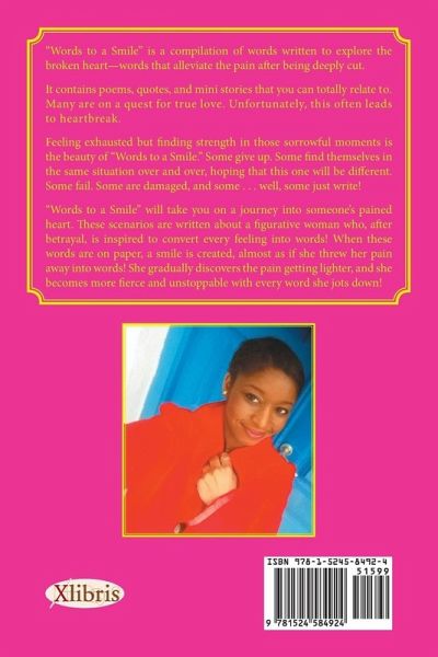"Words to a Smile" is a compilation of words written to explore the broken heart—words that alleviate the pain after being deeply cut. It contains poems, quotes, and mini stories that you can totally relate to. Many are on a quest for true love. Unfortunately, this often leads to heartbreak. Feeling exhausted but finding strength in those sorrowful moments is the magic of "Words to a Smile." Some give up. Some find themselves in the same situation over and over, hoping that this one will be different. Some fail. Some are damaged, and some . . . well, some just write! "Words to a Smile" will take you on a journey into someone’s pained heart. These scenarios are written about a figurative woman who, after betrayal, is inspired to convert every feeling into words! When these words are on paper, a smile is created, almost as if she threw her pain away into words! She gradually discovers the pain getting lighter, and she becomes more fierce and unstoppable with every word she jots down!