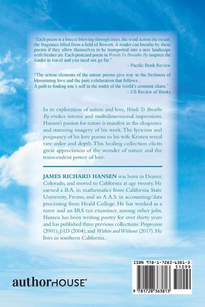 In the tumultuous world we live in, "Words To Breathe By" offers a respite, a sanctuary of solace where readers can find healing and peace. Crafted with profound emotion and fervor, this remarkable anthology delivers poetry for healing, serving as a soothing balm for anyone grappling with emotional or spiritual distress. Hansen's work encapsulates the essence of inspirational poetry, each verse resounding with wisdom and resilience. As readers delve into these pages, they are not merely observers but active participants on a journey toward finding peace. Whether battling the stress of modern living or wrestling with personal demons, this book offers the opportunity for healing and personal growth. From the grandeur of lofty mountains to the tranquility of a silent lake, Hansen's passion for nature and its calming influence is palpable. The picturesque, vividly described landscapes inspire readers to appreciate nature and its healing properties. It's a poignant reminder of the serenity and clarity that can be found when we choose to escape into nature. This element of the book serves as poetry for mental health, a testament to the therapeutic potential of immersing oneself in the natural world. But nature isn't the only muse in this stunning collection. At its heart, "Words To Breathe By" is a love story. Hansen's poems about intense love towards his wife, Kristen, are raw and unfiltered, revealing the depths of his emotions. Readers are privy to their passionate, intimate bond as if standing witness to their shared moments. These verses serve as a testament to love's transformative power, its ability to heal and rejuvenate, and its capacity to provide comfort in times of strife. "Words To Breathe By" is more than a collection of poems; it's a lifeline, a beacon of hope for anyone navigating the complexities of life. As readers traverse through its pages, they are bound to emerge with a deeper appreciation for the world around them, a profound understanding of love, and most importantly, a better sense of self. This book invites readers to embark on a journey of healing, inspiration, and self-discovery. It's a testament to the human spirit's resilience and the transformative power of words.