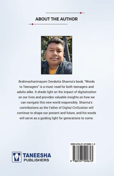"Words to Teenagers" is a thought-provoking book that delves into the impact of digitalization on the younger generation. This book offers valuable insights and practical advice for teenagers navigating the digital world. The authors emphasize the importance of using technology in a balanced and responsible manner, highlighting the potential risks of excessive screen time, social media usage, and online interactions. They provide tips on how teenagers can cultivate healthy digital habits, protect their privacy online, and stay safe in the digital realm. With engaging real-life examples and relatable anecdotes, "Words to Teenagers" encourages readers to think critically about their digital footprint, online relationships, and mental well-being in the age of smartphones and social media. The book also addresses topics such as cyberbullying, digital literacy, and the future of work in a digitalized world. Overall, this book serves as a timely and informative guide for teenagers seeking guidance on how to navigate the complexities of digitalization responsibly and confidently.