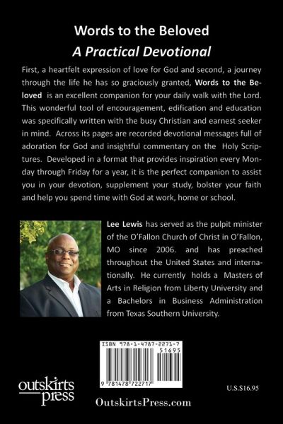 First a heartfelt expression of love for God and second, a year's journey through the life He has so graciously granted, Words To The Beloved is an excellent companion for your daily walk with the Lord lit by the signposts of Scripture. This wonderful tool of encouragement, edification and education was specifically written with the busy Christian and earnest seeker in mind. Across its pages are recorded devotional messages full of adoration for God and insight into His word for every weekday of the year. Whether at home, work or school, allow Words To The Beloved to assist you in your devotion, supplement your study, bolster your faith and help you spend time with God.