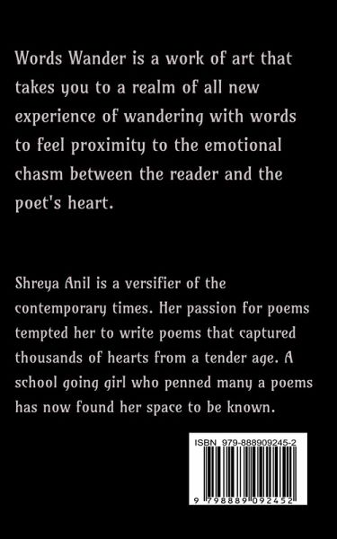 Words Wander is a work of art that takes you to a realm of all new experience of wandering with words to feel proximity to the emotional chasm between the reader and the poet's heart.