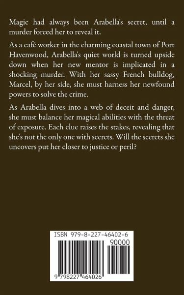 Magic had always been Arabella's secret, until a murder forced her to reveal it. As a café worker in the charming coastal town of Port Havenwood, Arabella's quiet world is turned upside down when her new mentor is implicated in a shocking murder. With her sassy French bulldog, Marcel, by her side, she must harness her newfound powers to solve the crime. As Arabella dives into a web of deceit and danger, she must balance her magical abilities with the threat of exposure. Each clue raises the stakes, revealing that she's not the only one with secrets. Will the secrets she uncovers put her closer to justice or peril?
