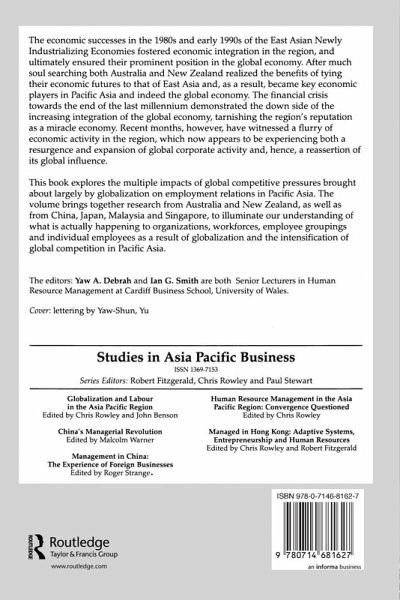 Work and employment in a globalized era Yaw A. Debrah and Ian G. Smith; globalization and confrontation - the transformation of the Australian coal industry Peter Waring et al; Australian trade unions' responses to human resource management initiatives in a globalized era Peter Holland et al; labour responses to globalization - the Australian experience Bernard McKenna; cross-cultural diversity leadership and workplace relations in Australia Dianne Lewis et al; expatriate academics in a globalized era - the beginnings of an untold story? Julian Richardson; globalized new public management and its impact on scientific research activity in New Zealand Steve McKenna; globalization economic crisis and employment practices - lesson from a large Malaysian Islamic institution Pawan Budhwar and Khairul Fadzil; global competitive pressures labour market and employment issues in the Japanese service sector Yoko Sano; globalization economic development and the reliance on guanxi as a job search strategy by Chinese students Cheng Soo May; conclusion - globalization work and employment in the Asia-Pacific region Ian G. Smith and Yaw A. Debrah.