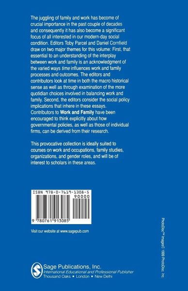 The `juggling act' of work and family has become a significant focus of those interested in the social condition. This book looks at the varied ways time influences work and family processes and considers the social policy implications that inhere.