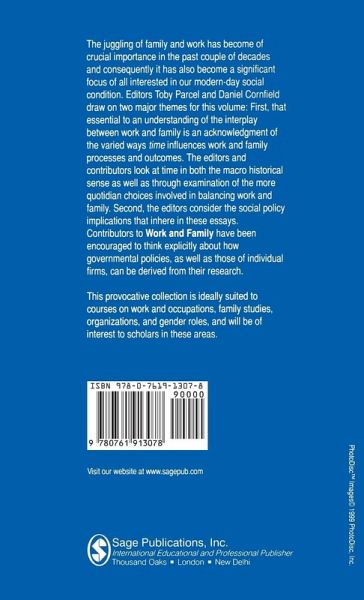 The `juggling act' of work and family has become a significant focus of those interested in the social condition. This book looks at the varied ways time influences work and family processes and considers the social policy implications that inhere.