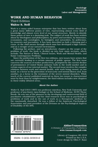 Work is a many-sided human enterprise that has been written about from a great many different points of view, representing almost every field of knowledge and almost every level of our social structure. Merely to identify these points of view is an impressive task. The subject of work has been written about by theologians and philosophers, by poets and novelists, by historians, economists, and sociologists, by biologists and naturalists, by politicians, by essayists and journalists. It has been described as both a blessing and a curse, as the chief means through which man has developed a high culture, and as a ravager of our natural environment. Following the preface, and an introductory chapter on the scope of the problem of work the title is divided up into four main sections, which include: The Nature of Work, Clinical Issues, Work and Mental Health, and Some Contemporary Problems Since the first two editions, new issues have arisen that are currently leading to a certain amount of public uproar. The first issue concerns the sources of worker productivity prompted by the current decline of preeminence of United States industry both in the world market and in certain aspects of our internal market. The second issue involves the complex relations between work and mental health, with work being viewed, on one hand, as a factor in the generation of insecurity and mental illness and, from another, as a factor in the treatment of the severe mental disorders. While much of the current published material on these two issues is characterized more by heat than by enlightenment, the third edition includes new chapters in these widely debated areas.