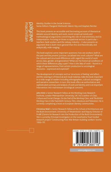 This book presents an accessible and fascinating account of theoretical debates around identity and work, recent empirical trends and methodological arguments concerning the role of oral testimony and its interpretation. Focusing on three occupational sectors in particular teachers, bank workers and the railway industry it also presents an argument that is both more general than this and theoretically and analytically wide-ranging.The book explores some important questions: how are workers, both in the past and the present juncture, socialised into work cultures? What are the cultural and structural differences with regard the world of work across class, gender, and generation? What are the historical conditions of which these differences play a part? How is the idea of work found in a range of representations, from artistic production to sociological discourse expressed and explored?The development of concepts such as 'structures of feeling' and affect, and the weaving in of historical and visual material, make the book important to a wide range of readers including ethnographers, cultural sociologists and narrative researchers. In turn, this book offers an authoritative and sophisticated summary and analysis of work and identity and is an important intervention into mainstream sociology concerns.
