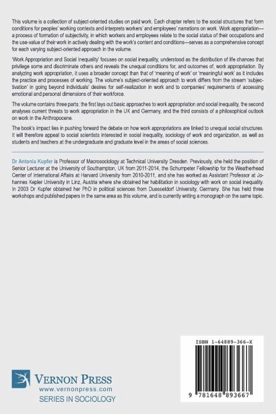 This volume is a collection of subject-oriented studies on paid work. Each chapter refers to the social structures that form conditions for peoples' working contexts and interprets workers' and employees' narrations on work. Work appropriation-a process of formation of subjectivity, in which workers and employees relate to the social status of their occupations and the use-value of their work in actively dealing with the work's content and conditions-serves as a comprehensive concept for each varying subject-oriented approach in the volume. 'Work Appropriation and Social Inequality' focuses on social inequality, understood as the distribution of life chances that privilege some and discriminate others and reveals the unequal conditions for, and outcomes of, work appropriation. By analyzing work appropriation, it uses a broader concept than that of 'meaning of work' or 'meaningful work' as it includes the practice and processes of working. The volume's subject-oriented approach to work differs from the stream 'subjectivation' in going beyond individuals' desires for self-realization in work and to companies' requirements of accessing emotional and personal dimensions of their workforce. The volume contains three parts: the first lays out basic approaches to work appropriation and social inequality, the second analyses current threats to work appropriation in the UK and Germany, and the third consists of a philosophical outlook on work in the Anthropocene. The book's impact lies in pushing forward the debate on how work appropriations are linked to unequal social structures. It will therefore appeal to social scientists interested in social inequality, sociology of work and organization, as well as students and teachers at the undergraduate and graduate level in the areas of social sciences.