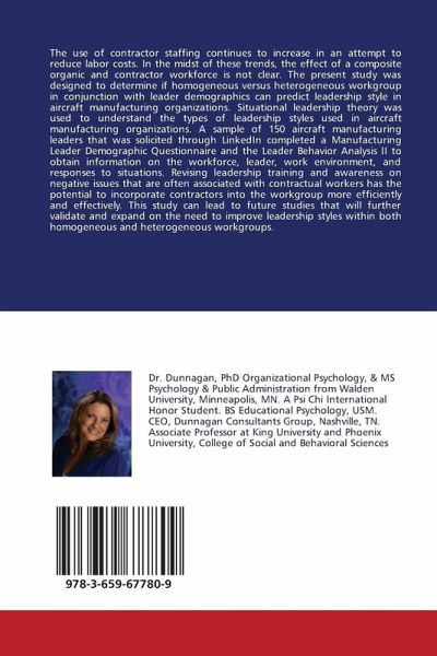 The use of contractor staffing continues to increase in an attempt to reduce labor costs. In the midst of these trends, the effect of a composite organic and contractor workforce is not clear. The present study was designed to determine if homogeneous versus heterogeneous workgroup in conjunction with leader demographics can predict leadership style in aircraft manufacturing organizations. Situational leadership theory was used to understand the types of leadership styles used in aircraft manufacturing organizations. A sample of 150 aircraft manufacturing leaders that was solicited through LinkedIn completed a Manufacturing Leader Demographic Questionnaire and the Leader Behavior Analysis II to obtain information on the workforce, leader, work environment, and responses to situations. Revising leadership training and awareness on negative issues that are often associated with contractual workers has the potential to incorporate contractors into the workgroup more efficiently and effectively. This study can lead to future studies that will further validate and expand on the need to improve leadership styles within both homogeneous and heterogeneous workgroups.