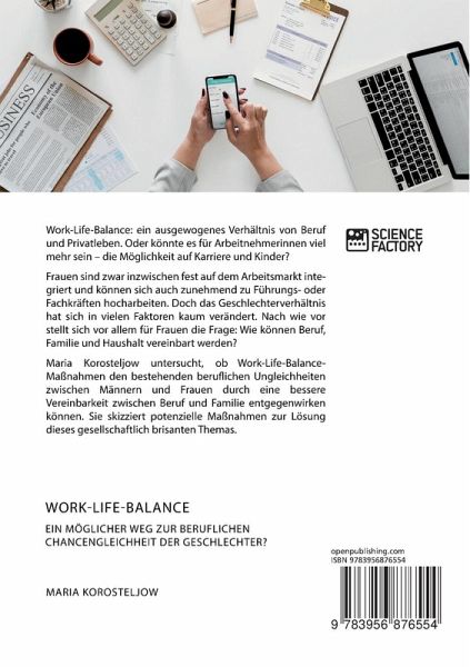 Work-Life-Balance: ein ausgewogenes Verhältnis von Beruf und Privatleben. Oder könnte es für Arbeitnehmerinnen viel mehr sein - die Möglichkeit auf Karriere und Kinder?Frauen sind zwar inzwischen fest auf dem Arbeitsmarkt integriert und können sich auch zunehmend zu Führungs- oder Fachkräften hocharbeiten. Doch das Geschlechterverhältnis hat sich in vielen Faktoren kaum verändert. Nach wie vor stellt sich vor allem für Frauen die Frage: Wie können Beruf, Familie und Haushalt vereinbart werden?Maria Korosteljow untersucht, ob Work-Life-Balance-Maßnahmen den bestehenden beruflichen Ungleichheiten zwischen Männern und Frauen durch eine bessere Vereinbarkeit zwischen Beruf und Familie entgegenwirken können. Sie skizziert potenzielle Maßnahmen zur Lösung dieses gesellschaftlich brisanten Themas.Aus dem Inhalt:- Gleichberechtigung;- Diskriminierung;- Frauenrechte;- Gender;- Homeoffice