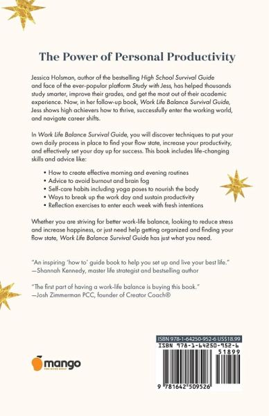 Jessica (studywithjess) Holsman, author of the bestselling High School Survival Guide, has helped thousands of her fans study smarter, improve their grades, and get the most out of their high school experience. Now, in Work Life Balance Survival Guide, Jess is showing her high achievers how to thrive and succeed as college students, successfully enter the working world, and/or navigate a career shift.