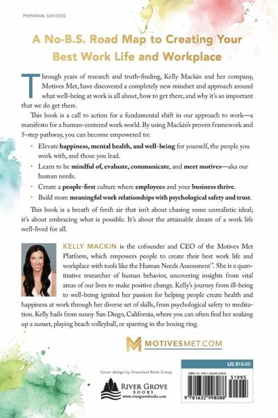 This book will disrupt how you think about creating your best work life and workplace and give you a no-B.S. road map to get you there. What you've been taught about how to find health and happiness at work is inaccurate. Yep, it's wrong. If you are fed up with the overwhelming and conflicting noise around how to create a fulfilling professional life or be a leader people actually want to work for, this book will help you cut through the clutter once and for all. Through years of research and truth-finding, Kelly Mackin and her company, Motives Met, have discovered a completely new mindset and approach around what well-being at work is all about, how to get there, and why it's so important that we do get there. This book is a transformative personal guide; but it's also a call to action for a fundamental shift in our approach to work-a manifesto for a human-centered work world. The heart of humanizing work is honoring that we are human beings at work with human needs, and these needs-what Mackin refers to as motives-should be healthy and, ideally, thriving. Ill-being still drastically overshadows well-being at work, but using Mackin's proven framework and 5-step pathway we can change that. You will become empowered to ¿ elevate happiness, mental health, and well-being for yourself, the people you work with, and those you lead; ¿ learn to be mindful of, evaluate, and communicate motives, to ultimately meet them; ¿ create a people-first culture where employees thrive and business thrives; ¿ overcome well-being obstacles by eliminating the "dream killers" that threaten a human way of working; ¿ ditch surface-level connection and friction for more meaningful work relationships with psychological safety and trust. And so much more! *EXCLUSIVE HUMAN NEEDS ASSESSMENT CODE* Are your motives met? With your book purchase, you will receive your code to take the Motives Met Human Needs Assessment to uncover your top 5 motives, the psychological, emotional, and social human needs driving your ability to thrive at work today. The assessment reveals the unique truth of well-being for yourself, your team, and organization. This book is a breath of fresh air that isn't about chasing perfection or some unrealistic ideal; it's about embracing what is genuinely possible. It's about the attainable dream of a work life well-lived for all.