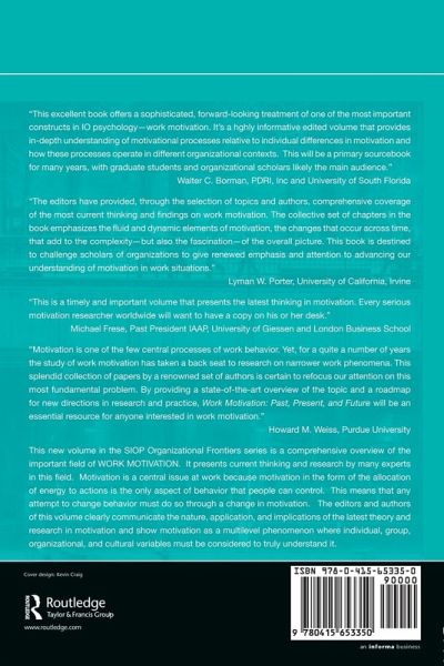 Series Foreword Foreword Preface Acknowledgments Contributors 1. The Three C's of Work Motivation: Content Context and Change 2. The Measurement and Analysis of Motivation 3. Motivation for What? A Multivariate Dynamic Perspective of the Criterion 4. Goal Choice and Decision Processes 5. Goal-Striving and Self-Regulation Processes 6. Self-Regulation and Multiple Deadline Goals 7. Designing Motivating Jobs: An Expanded Framework for Linking Work Characteristics and Motivation 8. Motivation in and of Work Teams: A Multilevel Perspective 9. Leadership Processes and Work Motivation 10. Organizational Systems and Employee Motivation 11. Motivation to Engage in Training and Career Development 12. A Self-Regulatory Perspective on Navigating Career Transitions 13. Nonwork Influences on Work Motivation 14. Social-Cultural Influences on Work Motivation 15. Essays from Allied Disciplines 16. Work Motivation: Forging New Perspectives and Directions in the Post-Millennium Author Index Subject Index
