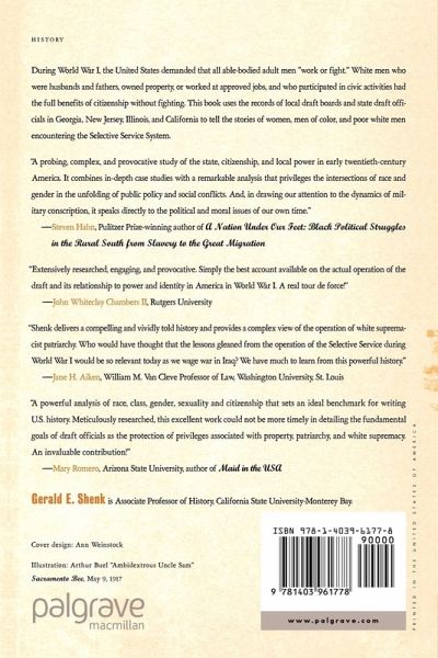 "Shenk's richly textured analysis not only delivers acompelling and vividly told history but provides a complex view of the operation of white supremacist patriarchy. He helps us see how small decisions of both cooperation and resistance serve to shape but not undermine that ideology. Nevertheless, the stories are a testament to human will. Who would have thought that the lessons gleaned from the operation of the Selective Service during World War I would be so relevant today as we wage war in Iraq? We have much to learn from this powerful history." - Jane H. Aiken, William M. Van Cleve Professor of Law,