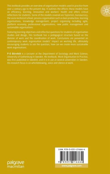 This textbook provides an overview of organisation models used in practice from over a century ago to the present day. It outlines the effects these models have on efficiency, learning, innovation and workers' health and offers critical reflections for students. Some of the models covered are Taylorism, bureaucracy, the socio-technical school, process organisation such as lean production, learning organisations, knowledge management, project organising including agile, platform economy, professional organisations, new public management and sustainable organisations.