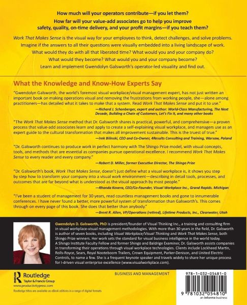 This book presents the mechanics of implementing visuality on the value-add level known as â Work That Makes Sense" (WTMS). The step-by-step WTMS process described in this book teaches operators a proven method for translating information deficits into visual solutions that take the struggle out of their day-to-day work.