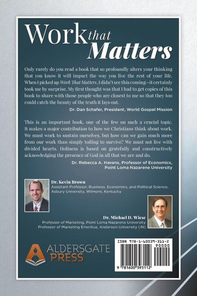 Work That Matters makes a major contribution to how we Christians think about work. We must work to sustain ourselves, but how can we gain much more from our work than simply toiling to survive? We must not live with divided hearts. Holiness is based on gratefully and constructively acknowledging the presence of God in all that we are and do.