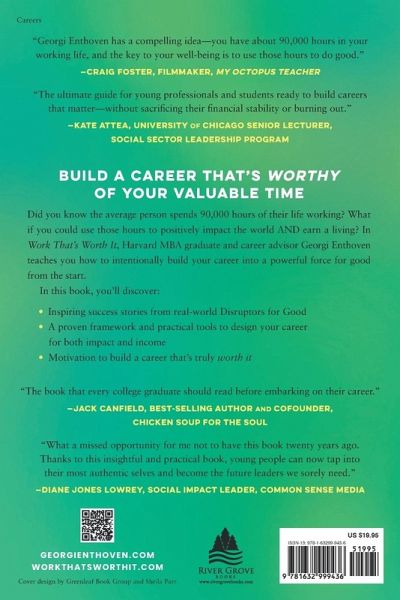 Build a career that's worthy of your valuable time Did you know the average person spends 90,000 hours of their life working? That's a third of your adult life! What if you could use those hours to make a significant impact on the world AND earn a living? In Work That's Worth It, Harvard MBA graduate Georgi Enthoven teaches you to turn your career into a powerful force for good and break free from the unnecessary choice between income or impact. In this powerful book, you'll discover: ¿The Good Work Spiral: Create a virtuous cycle where your career benefits both you and the world, leading to growth and fulfillment. ¿The 7 Cs of work that's worth it: Master the essential building blocks for a purposeful and rewarding career. ¿Inspiring success stories: Draw motivation from social entrepreneurs, impact investors, and corporate innovators who solve real-world problems while building successful careers. ¿Practical strategies: Assess your current career satisfaction, set clear goals, and align your work with your values to create a new perspective. Whether you're a young professional feeling stuck between chasing a paycheck and pursuing your passion or wanting a clear direction for your work, this book offers the insights and tools to craft a career that's truly worth it.