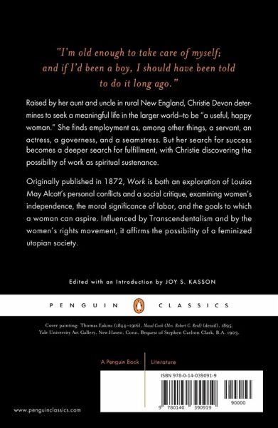 A story about a nineteenth-century woman's search for a meaningful life through work outside the family sphere, Work is at once Alcott's exploration of her personal challenges and a social critique of America. For more than seventy years, Penguin has been the leading publisher of classic literature in the English-speaking world. With more than 1,700 titles, Penguin Classics represents a global bookshelf of the best works throughout history and across genres and disciplines. Readers trust the series to provide authoritative texts enhanced by introductions and notes by distinguished scholars and contemporary authors, as well as up-to-date translations by award-winning translators.