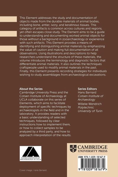 This Element focuses on studying and documenting durable animal body artifacts like bone, antler, ivory, and keratinous tissues. It emphasizes caution and documentation, using illustrations and descriptions to understand their structure. It introduces terminology, diagnostic factors, and techniques used by craftspeople to modify animal materials.