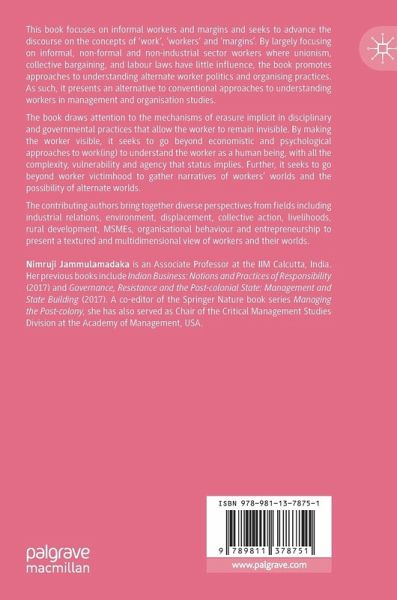 The book draws attention to the mechanisms of erasure implicit in disciplinary and governmental practices that allow the worker to remain invisible. By making the worker visible, it seeks to go beyond economistic and psychological approaches to work(ing) to understand the worker as a human being, with all the complexity, vulnerability and agency that status implies. Further, it seeks to go beyond worker victimhood to gather narratives of workers' worlds and thepossibility of alternate worlds.
