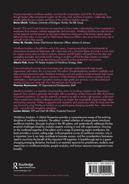 Workforce Analytics: A Global Perspective provides a comprehensive sweep of key issues facing the evolving discipline of workforce analytics. The editors, all globally recognized in this field, have curated a collection of unique pieces that introduce workforce analytics, discuss its place in the HR sphere, and systematically address the key practical challenges faced by analytics experts working in and with organizations. Drawing on the combined expertise of the editors and a range of practicing expert contributors, the book provides a current, cutting-edge, and multi-perspective survey of workforce analytics. The contributions examine why workforce analytics is important, how it can help contribute to business success, and the considerations businesses need to address to maximize the benefit of this important HR expertise. A breakthrough text in a game-changing emerging discipline, the book is an essential resource for practitioners, students, and researchers in workforce analytics, people analytics, and human resource management more broadly.