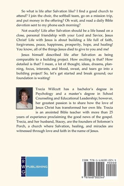 10 Lesson Bible StudySo what is life after Salvation like? I find a good church to attend? I join the choir, the softball team, go on a mission trip, and put money in the offering? Oh wait, and read a daily Bible devotion sent to my phone each morning? Not exactly! Life after Salvation should be a life based on a close, personal friendship with your Lord and Savior, Jesus Christ! Life with Jesus is about building a life full of faith, forgiveness, peace, happiness, prosperity, hope, and healing! You know, all of the things Jesus died to give to you and me! Jesus himself described life after Salvation as being comparable to a building project. How exciting is that? How detailed is that? I mean, a lot of thought, ideas, dreams, planning, focus, interests, and blood, sweat, and tears go into a building project! So, let's get started and break ground; our foundation is waiting!