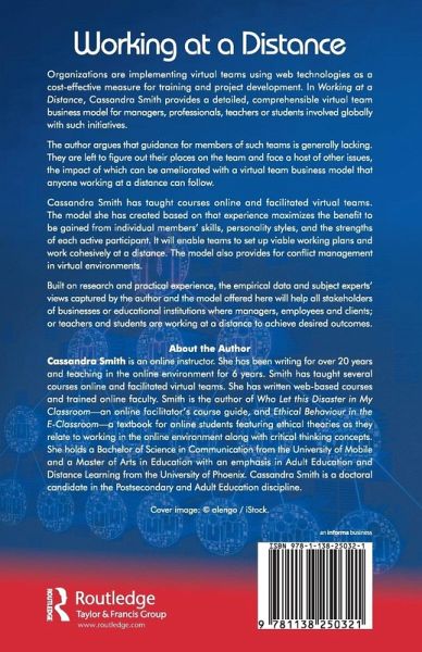 Organizations are implementing virtual teams using web technologies as a cost-effective measure for training and project development. In Working at a Distance, Cassandra Smith provides a detailed, comprehensible virtual team business model for managers, professionals, teachers or students involved globally with such initiatives. The author argues that guidance for members of such teams is generally lacking. They are left to figure out their places on the team and face a host of other issues, the impact of which can be ameliorated with a virtual team business model that anyone working at a distance can follow. Cassandra Smith has taught courses online and facilitated virtual teams. The model she has created based on that experience maximizes the benefit to be gained from individual members' skills, personality styles, and the strengths of each active participant. It will enable teams to set up viable working plans and work cohesively at a distance. The model also provides for conflict management in virtual environments. Built on research and practical experience, the empirical data and subject experts' views captured by the author and the model offered here will help all stakeholders of businesses or educational institutions where managers, employees and clients; or teachers and students are working at a distance to achieve desired outcomes.